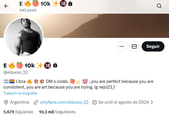 En la descripción de su perfil, no hablaba sobre su profesión, solo contaba cuál era su signo zodiacal, su orientación sexual, invitaba a otros usuarios para hacer colaboraciones para su cuenta en OnlyFan y cerraba la presentación con una frase en inglés: you are perfect because you are consistent, you are art because you are trying [eres perfecto porque eres constante, eres arte porque lo intentas].