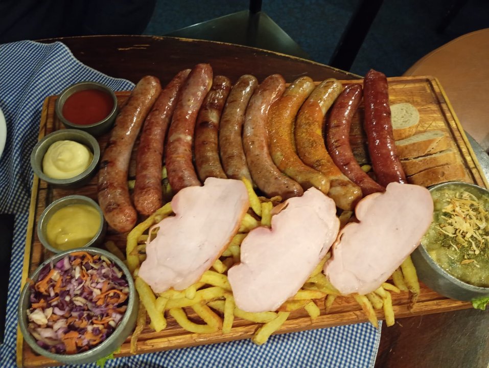 Si vas con hambre (y amigos), la recomendación es clara. La Picada Bavaria es la estrella para arrancar: una selección de 10 salchichas de cuatro variedades distintas, acompañadas de unas generosas fetas de cerdo que se deshacen en la boca.