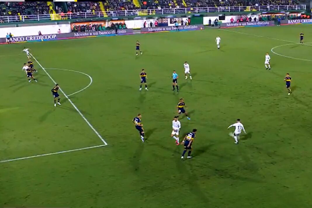 NO SUMA: por este offside de Gutiérrez, fue anulado el primero de Defensa y Justicia vs. Boca en Florencio Varela.