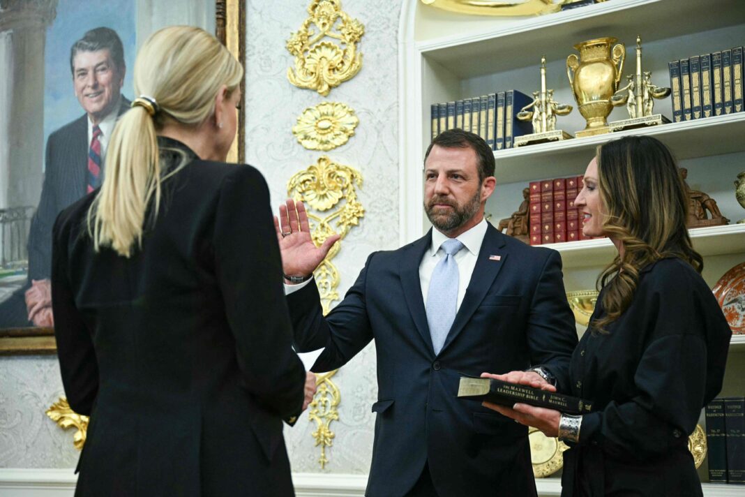 Markwayne Mullin, exsenador por Oklahoma, es el noveno secretario del Departamento de Seguridad Nacional (DHS, por sus siglas en inglés). En una ceremonia de juramentación en la Casa Blanca, el presidente Donald Trump destacó su trabajo como senador y su política para mantener las fronteras “seguras”. “Mi trabajo es proteger a todos”, expresó Mullin luego de asumir el cargo.