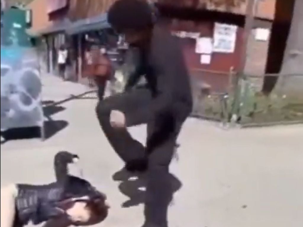 Un video del ataque, que se viralizó rápidamente en las redes sociales, registra la secuencia del ataque completa. Las imágenes muestran al agresor vestido completamente de negro y con un barbijo confrontando a la víctima en la esquina de la calle 107 Este y la 3ª Avenida en East Harlem.